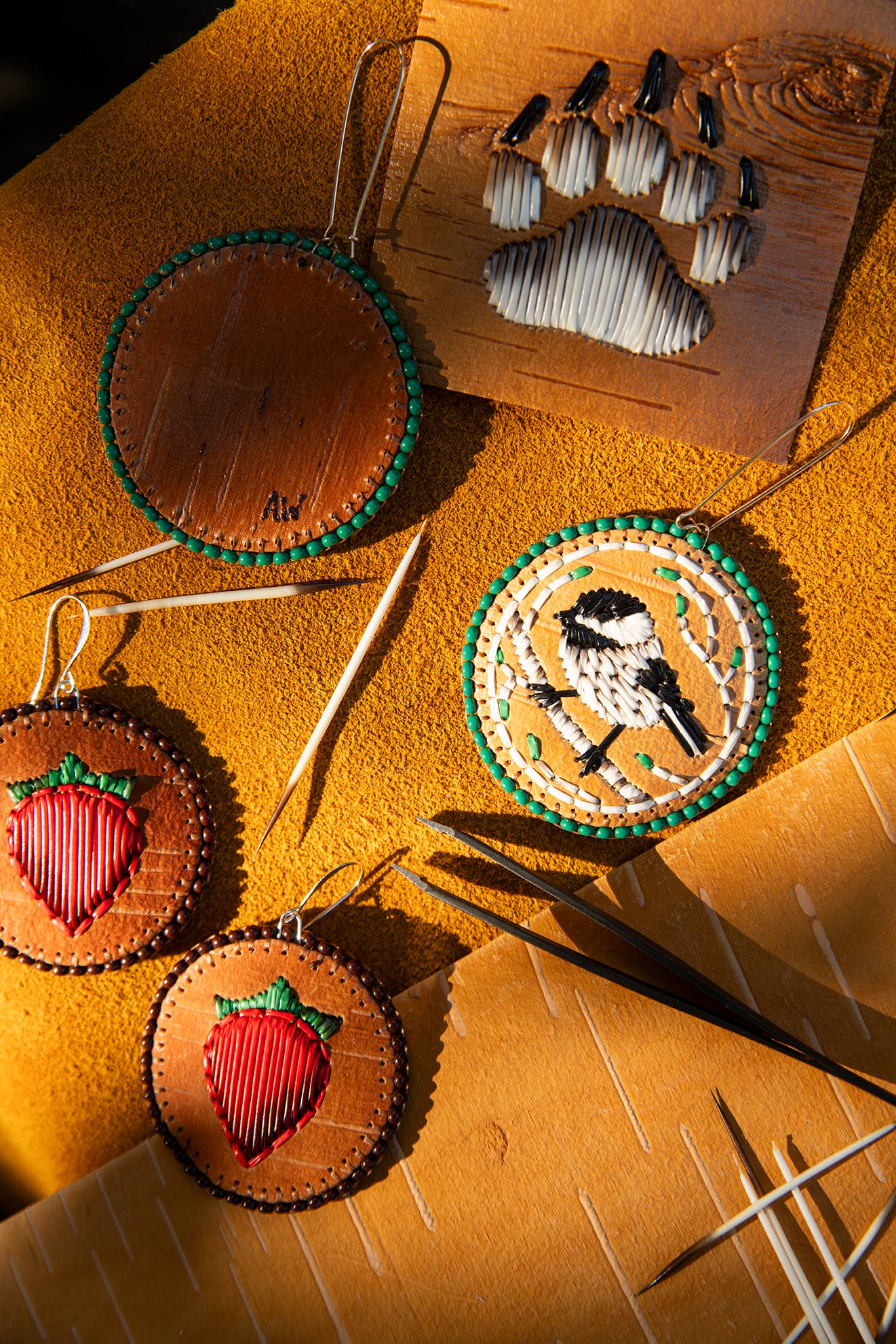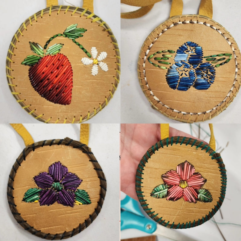 My workshops are beginner-friendly and focus on creating small, meaningful projects such as medallions, pins, hair barrettes, earrings, and ornaments. These sessions introduce participants to the foundational techniques of porcupine quillwork in a supportive, culturally grounded environment and are ideal for community groups, organizations, schools, and youth programs.
